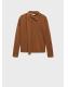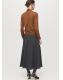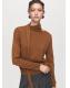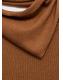 Confeccionado en tejido de punto fino, este diseño recto presenta un cuello asimétrico adornado con un fular y manga larga