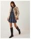 Jacq of all trades. Elevate your collection of mini dresses with this smart style. Showcasing bold geometric patterns in a jacquard finish, it's designed with a pointed collar, sleek zip fastening and full-length sleeves. Complete the look with your go-to jacket for Autumn and knee-high boots. Grey
