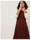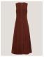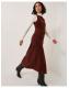 Autumn's calling. Crafted in uncut corduroy for a luxuriously smooth finish, this dress features a sleeveless bodice, scalloped edges and a structured midi-length hem. Style on its own, or layered over a turtleneck and knee high boots to finish. Red