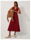 Lady in red. Soaked in the shade of the season, this cherry denim number is a statement pick you can style day and night. Cut with a v-neckline that compliments the A-line silhouette so well, it's finished with contrast seams for a contemporary, tailored feel. Red