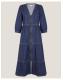 Zip it. Soaked in a lovely indigo hue, this denim dress is a timeless pick for your wardrobe. Featuring ¾ length sleeves and a tiering midi length hem, it fastens with a zip from the v-neckline to under the knees. Complete the look with suede accessories for a chic boho-inspired 'fit. Blue