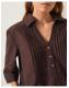 Stay chic in the heat. Spun from a lightweight blend of viscose, cotton and linen, this shirt calls for dinner reservations in summertime. It's designed with a sharp collar, button placket and pin-tuck pleats for an elevated finish. Brown