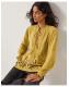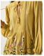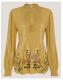Let your outfit do the blooming. Soaked in a tone reminiscent of an amber jewel, this blouse is a real gem. Embroidered with pastel florals and decorative stitching, it's sure to liven up your autumnal wardrobe. Finished with a high ruffle neckline and tassel cords to tie and style however you wish. Green
