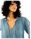 The product: Feeling blue? Light and airy, this billowy blouse is designed with a frilly neckline, v-front and slightly cropped hem. Decorated with textured floral embroidery and lace panels for a finish that's a little bit femme, and a little bit boho. An easy pick to style with jeans, it also looks great with flowy maxi skirts.