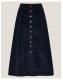 A moment for the midi. A little retro, a lot of style, this A-line skirt is cut from soft corduroy in a dark, dreamy hue. Slung high on the waist and finished with button fastenings through the front, it's best paired with tucked-in blouses and knee high boots. Blue