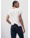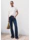 Confeccionada en tejido 100% algodón, esta prenda presenta un diseño recto con cuello caja. La manga corta con vuelta y los detalles calados aportan un toque especial
