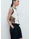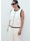 Confeccionado en tejido mezcla de algodón y punto fino, este diseño recto presenta un cuello redondo y tirantes anchos. Los ribetes en contraste y el cierre delantero con botones completan el estilo. Cuenta con un pantalón a conjunto para un 'total look'. Disponible Plus