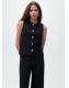 Confeccionado en tejido de punto fino, este diseño recto presenta un cuello caja y tirantes anchos. El cierre delantero con botones añade funcionalidad y estilo al conjunto