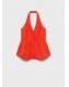 Este chaleco presenta un diseño de corte peplum y cuello halter. Combínalo con su pantalón a juego de corte recto para un 'total look'