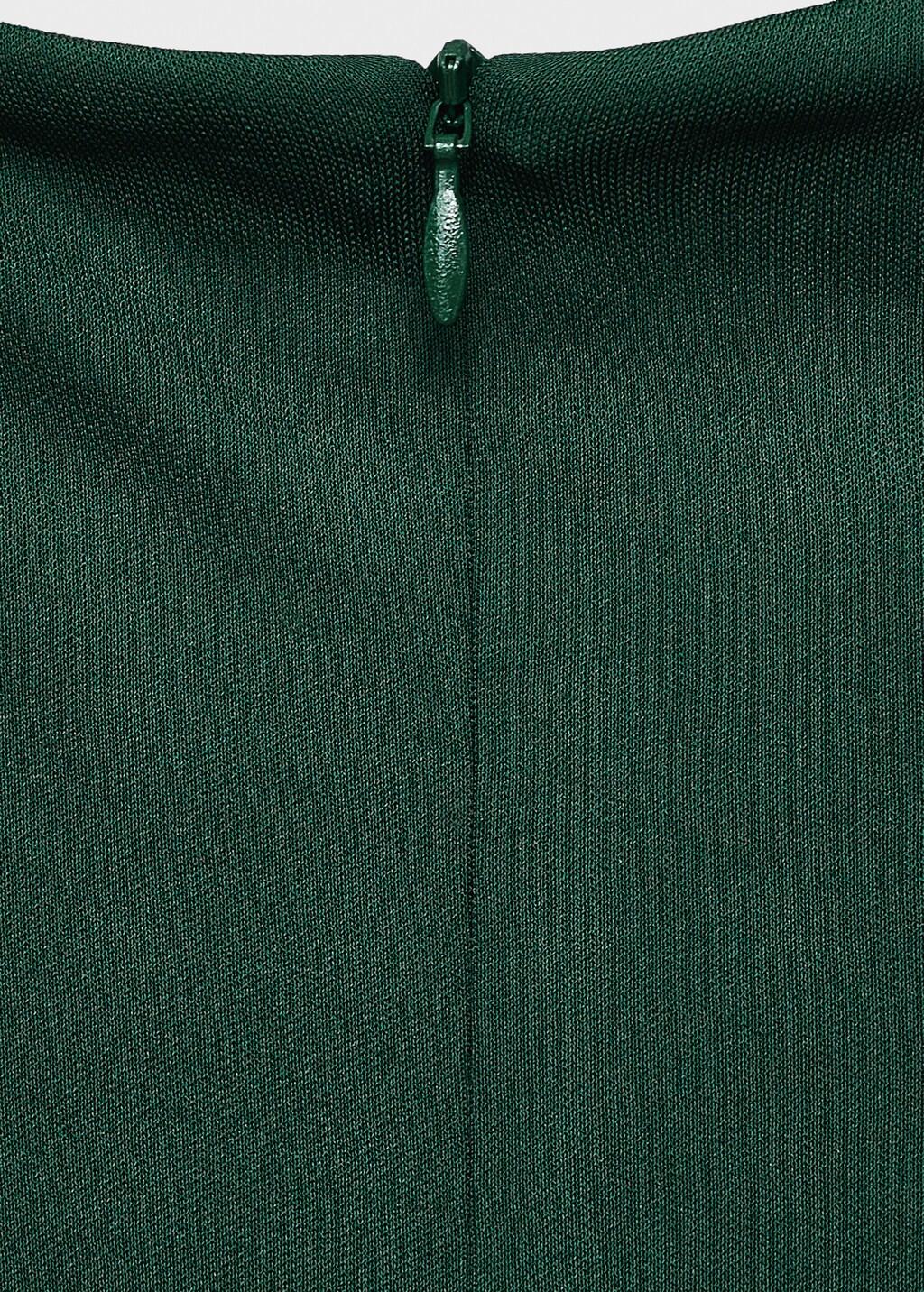 Diseño largo. Diseño recto. Cuello perkins. Sin mangas. Escote drapeado. Detalle fruncido en la cintura. Cierre de cremallera en la parte posterior. Exclusivo Online