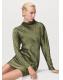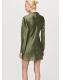 Tejido satinado. Diseño corto. Diseño recto. Estampado geométrico. Cuello perkins. Manga larga. Cierre de cremallera en la parte posterior
