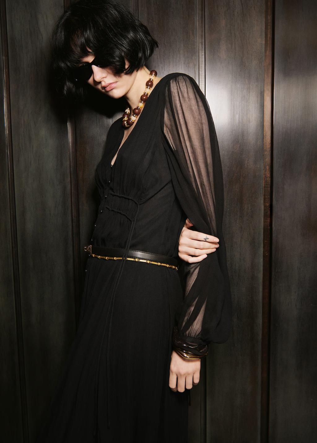 Vestido gasa manga abullonada