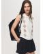 Confeccionado en tejido de punto fino, este diseño recto presenta un patrón de rombos. El cuello polo con cierre de botones añade un toque clásico, mientras que los tirantes anchos completan su estilo