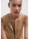 Este chaleco confeccionado en tejido de punto fino, presenta un diseño minimalista. Tiene un cuello redondo y una hilera de pequeños botones en la parte delantera, que permiten llevarlo abierto o cerrado. Ideal para un estilo cómodo y atemporal