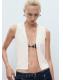 Este chaleco confeccionado en tejido de punto fino, presenta un diseño minimalista. Tiene un cuello redondo y una hilera de pequeños botones en la parte delantera, que permiten llevarlo abierto o cerrado. Ideal para un estilo cómodo y atemporal