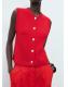 Confeccionado en 100% algodón, este chaleco presenta un tejido de punto grueso con diseño de trenzas. Con dos bolsillos de parche en el pecho y botones dorados, se convierte en una prenda versátil que puedes usar para añadir color y textura a tu atuendo