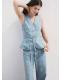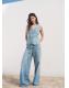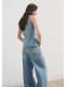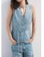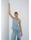 Tejido de algodón estilo tejano vaquero. Diseño recto. Cuello de pico. Sin mangas. Tirantes anchos. Cierre delantero con botones. Total look