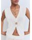 Tejido de punto calado. Diseño recto. Cuello de pico. Sin mangas. Tirantes anchos. Cierre de botones en la parte delantera
