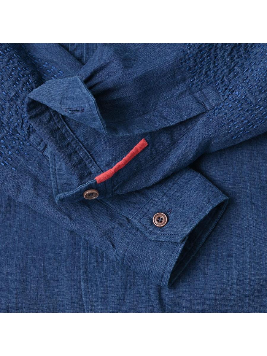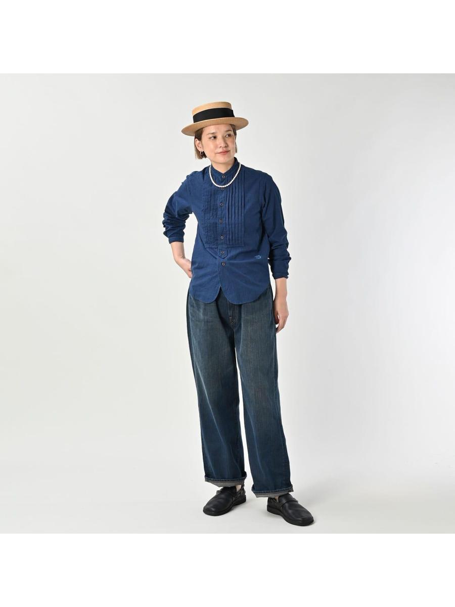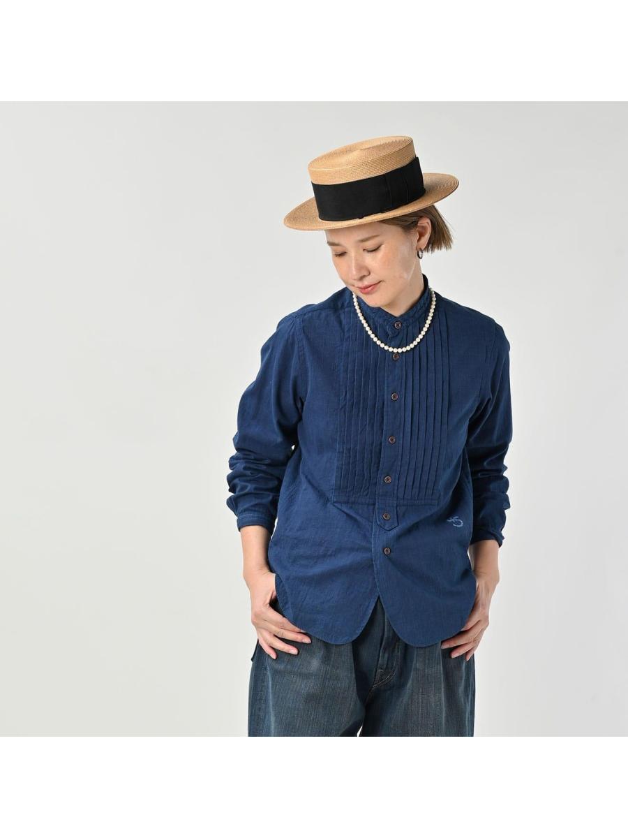 藍職人 インドカディオックスの908ピンタックスタンドシャツ(藍)