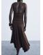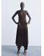 Tejido elástico. Diseño largo. Diseño entallado. Diseño combinado. Escote de pico. Sin mangas. Tirantes anchos. Cuerpo fruncido. Bajo con terminaciones en pico. Sin cierre