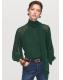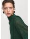 Confeccionada en tejido semitransparente, esta prenda presenta un diseño recto con estampado. El cuello alto se complementa con un cierre de lazo, mientras que las mangas largas tienen puños abotonados. Incluye forro interior