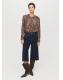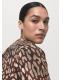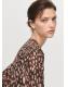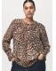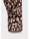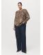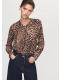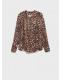 Confeccionada en tejido satinado con estampado de leopardo, esta prenda presenta un diseño recto con cuello redondo con tiras para lazo y manga larga con puños abotonados. Disponible en talla Plus