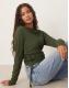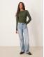 ASOS DESIGN long sleeve textured top with ruched tie side details in khaki