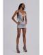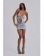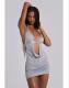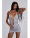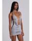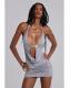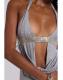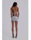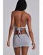 Grey marl backless halter mini dress with cut-out drape detail and decorative beading and silver hardware.