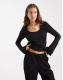 Vero Moda textured jersey bell sleeve top and pull on trouser set in black