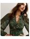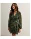 Green Paisley Print Chiffon Long Sleeve Mini Dress