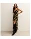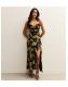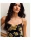 Black Floral Print Cowl Neck Chiffon Midi Dress