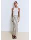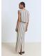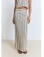 Tejido 100% de lino. Diseño largo. Diseño recto. Estampado de rayas. Cintura con goma elástica. Abertura posterior en el bajo. Forro interior 100% algodón. Total look