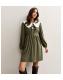 Light Khaki Tie Front Corduroy Smock Mini Dress