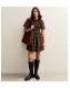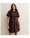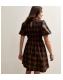 Brown Check Shirred Bodice Mini Dress