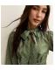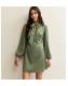 Green Polka Dot Pussybow Neck Satin Mini Dress