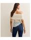 White Lace Off Shoulder Asymmetric Semi Sheer Top