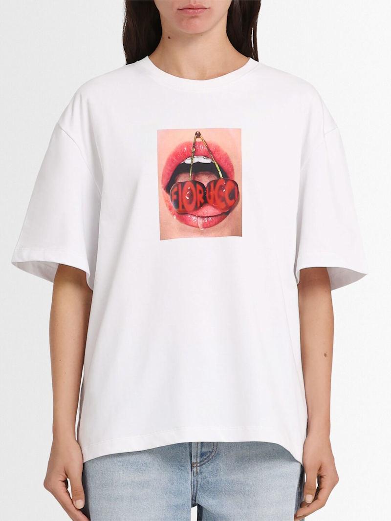 Cherry mouth印花棉质T恤 - 白色 - 女士 - Fiorucci - 圆领设计.