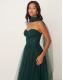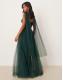 Lace & Beads Petite scarf neck corset tulle maxi dress in forest green