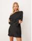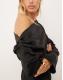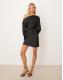 ASOS DESIGN satin drape long sleeve off shoulder mini dress in black
