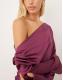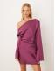 ASOS DESIGN satin drape long sleeve off shoulder mini dress in plum
