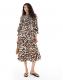 Wednesday's Girl ditsy floral shirred detail midaxi smock dress in brown