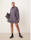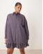 ASOS DESIGN CURVE long sleeve frill hem mini shirt dress in brown and navy check print