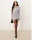 ASOS DESIGN wrap over shirt mini dress in dark grey pinstripe