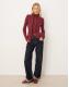 House of Sunny power peggy classic rib knit button up cardigan with scarf in burgundy