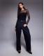 ASOS DESIGN mesh mix panel long sleeve bodysuit in black