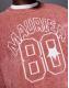 Text and graphic knit pattern on front