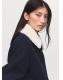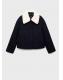 Tejido mezcla de lana. Diseño recto. Diseño corto. Cuello de solapa. Cuello de borreguito. Manga larga. Dos bolsillos de parche laterales. Cierre delantero de botones oculto. Forro interior