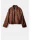 100% piel bovino con pelo. Diseño recto. Cuello camisero. Manga larga. Dos bolsillos laterales. Cierre delantero con cremallera. Forro interior 100% algodón