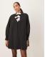 Ghospell swing mini dress with bow detail in mono
