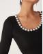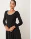 Sister Jane embellished scoop ribbed jersey mix midi dress with full skirt in black
